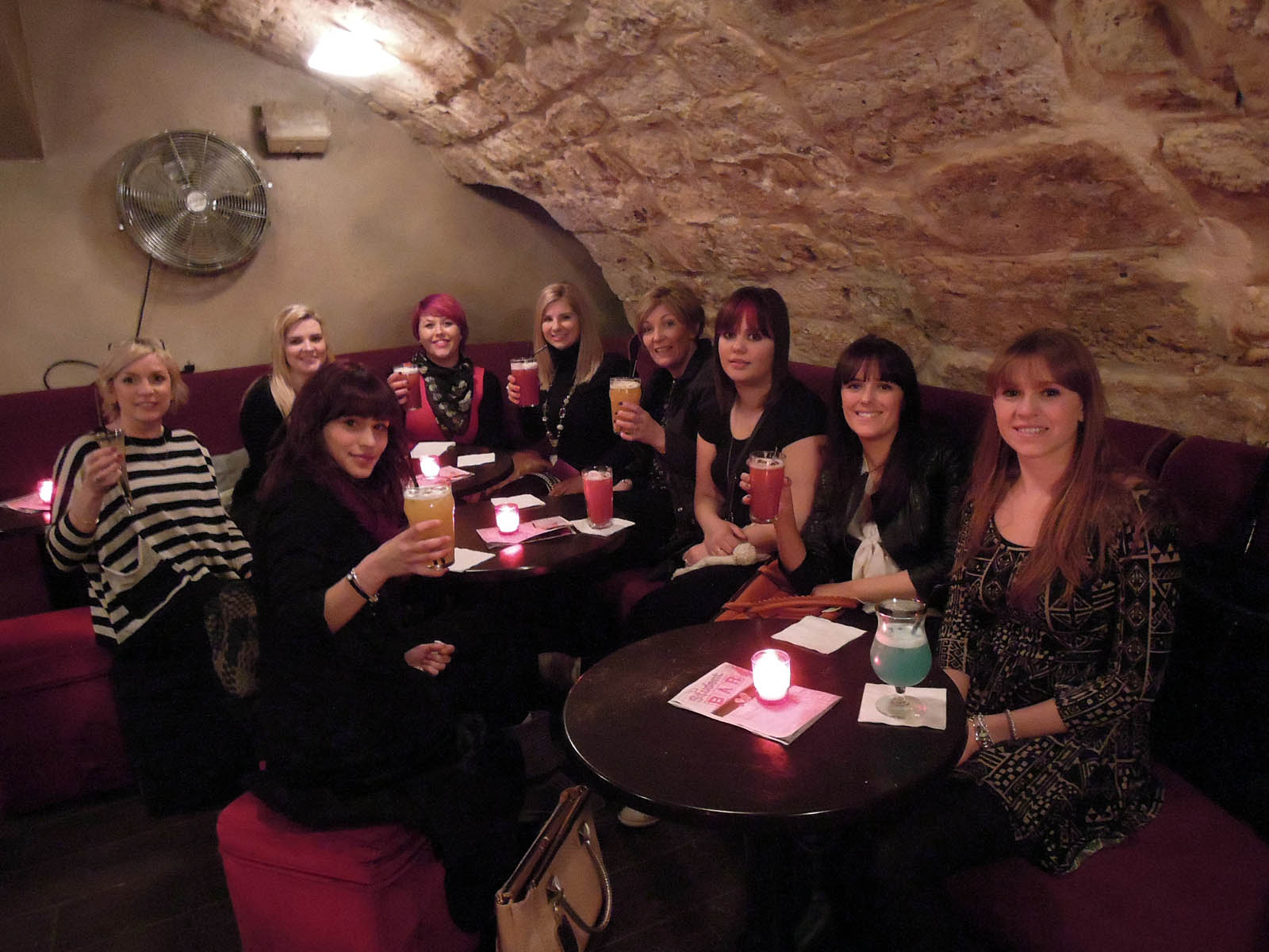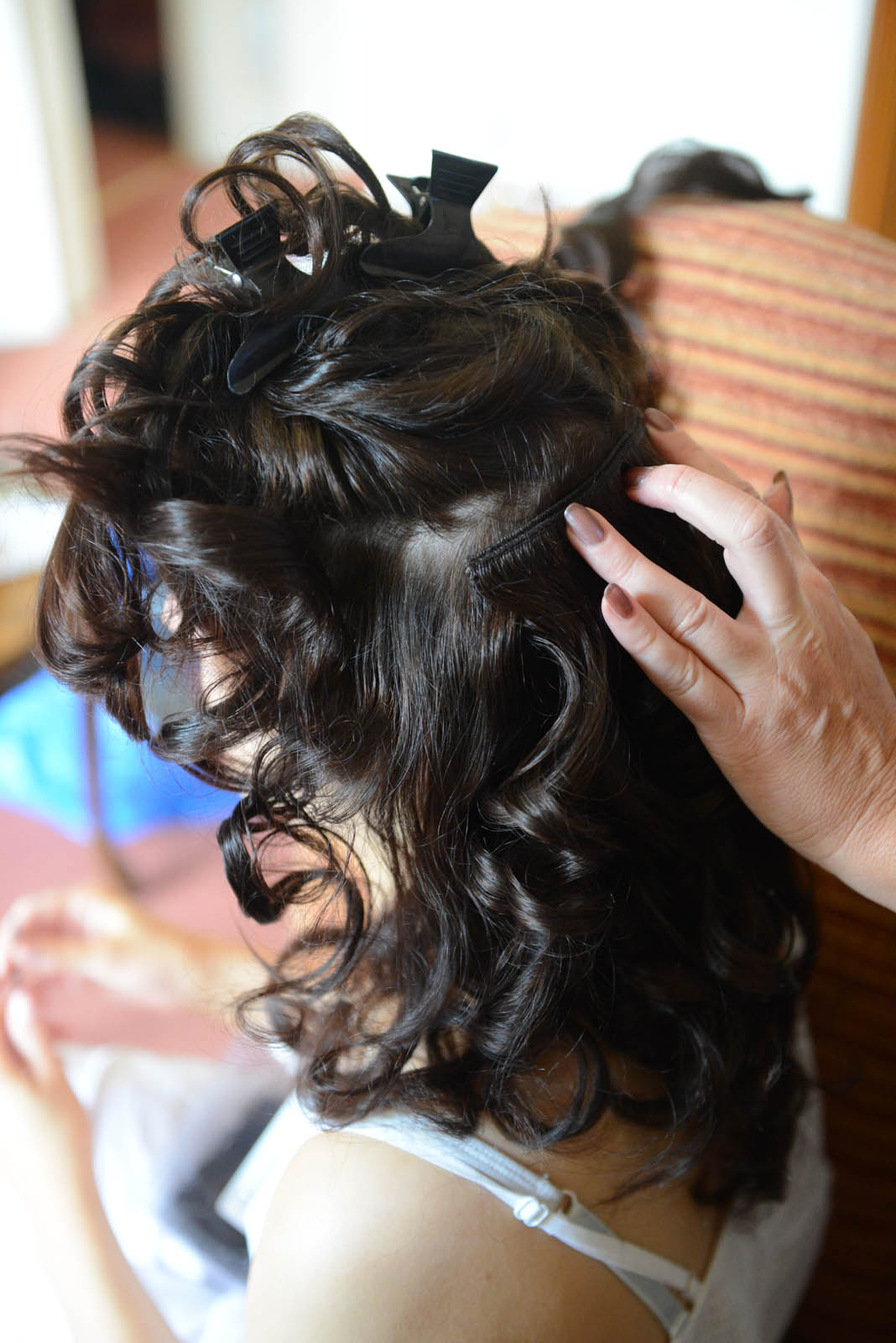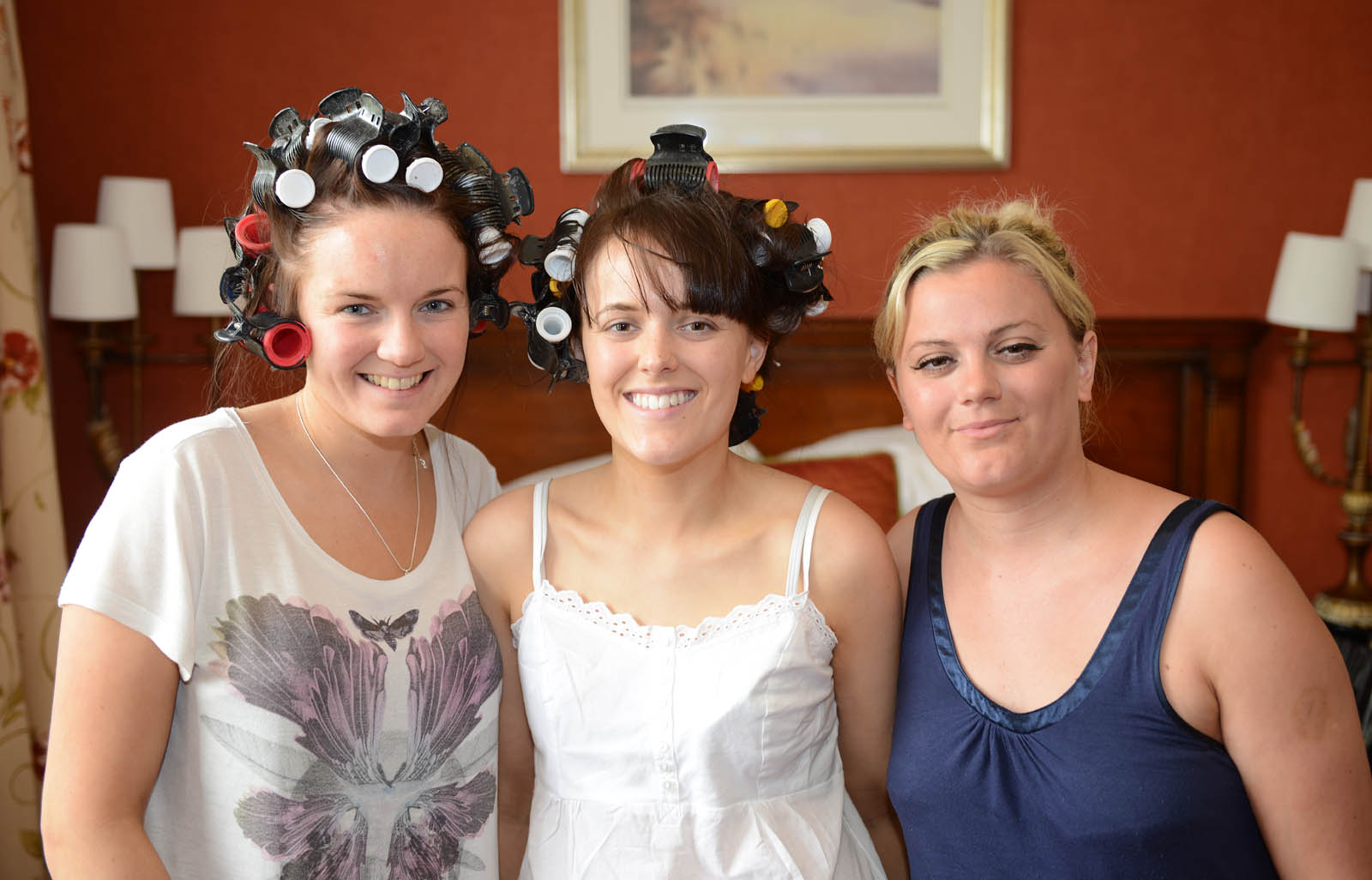 hair and makeup, for Sarah and her bridesmaids, with others just there for the celebration.